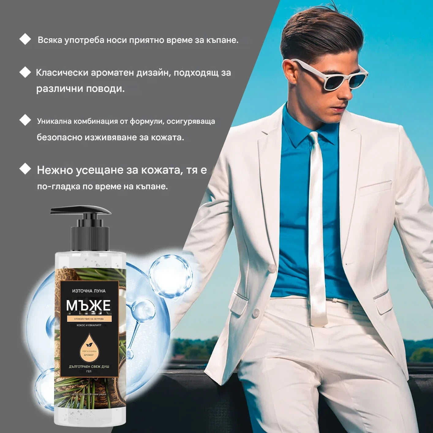 Подобри ежедневната си рутина с нашия мъжки душ гел с евкалипт и кокос 🥥🌿