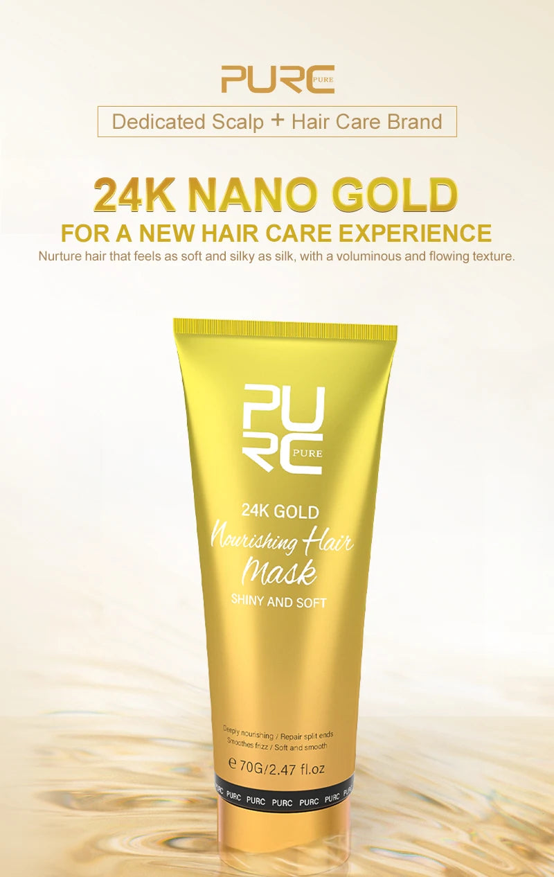 PURC 24K златна маска за коса, възстановяваща увредена и суха, къдрава, кератинова, изглаждаща и изправяща маска за коса, грижа за косата